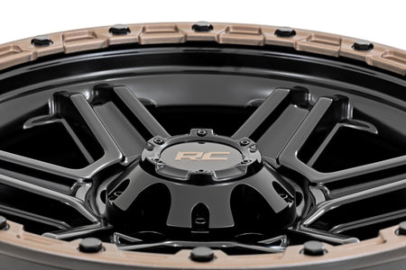 Looking for a wheel that can tackle the toughest trails and look good doing it? Say hello to Rough Country's 79 Series Wheel! Designed for the off-road enthusiast who demands style and performance, this wheel isn't just a pretty face?Çöit's built to handle whatever the trail throws at you.Semi-Gloss Black Finish: This sleek, head-turning finish will make your rig stand out, whether you're tearing up the trails or cruising through town.6-Spoke Design: This design looks rugged and aggressive, but it also offers superior strength and durability for all your off-road adventures.Bronze Outer Lip: The contrasting bronze lip adds a unique touch that sets these wheels apart from the rest, making your ride look as tough as it performs.Single-Piece Aluminum Construction: This wheel is crafted from a single piece of aluminum, making it super strong yet incredibly light. You get the best of both worlds?Çödurability and performance.Rough Country Black Center Cap: Each wheel includes a stylish black center cap with the Rough Country logo, adding that final touch of flair to your setup.Warranty: We value your investment. That's why we offer a 1-year finish warranty and a Limited Lifetime Structural Warranty. With Rough Country, you're not just getting a wheel, you're getting peace of mind.Whether you're tackling rocky trails, muddy paths, or just showing off around town, the 79 Series Wheel is built to perform and look great doing it. Get ready to turn heads and conquer the road with confidence! So why settle for ordinary when you can have extraordinary?Çöbecause life's too short for boring wheels.