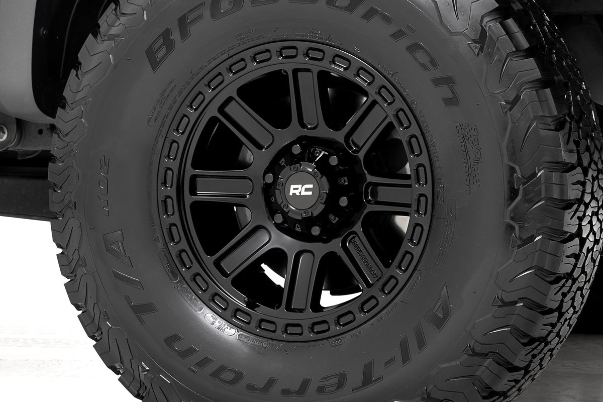 Looking to add some serious style and strength to your ride? Check out our Rough Country 84 Series Black Wheels! The Series 8 Wheels are a powerhouse of both style and strength. With their show-stopping Gloss Black finish, a bold 8-spoke design that demands attention, and a single-piece aluminum build that's sturdy and unbelievably lightweight, these wheels are the ultimate game-changer. And they come complete with a Rough Country black center cap to top off the look. Life's too short for boring wheels, so ditch the old wheels, unleash your individuality, and hit the road with the 84 Series Black Wheels.