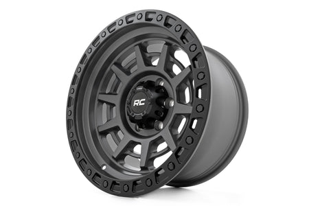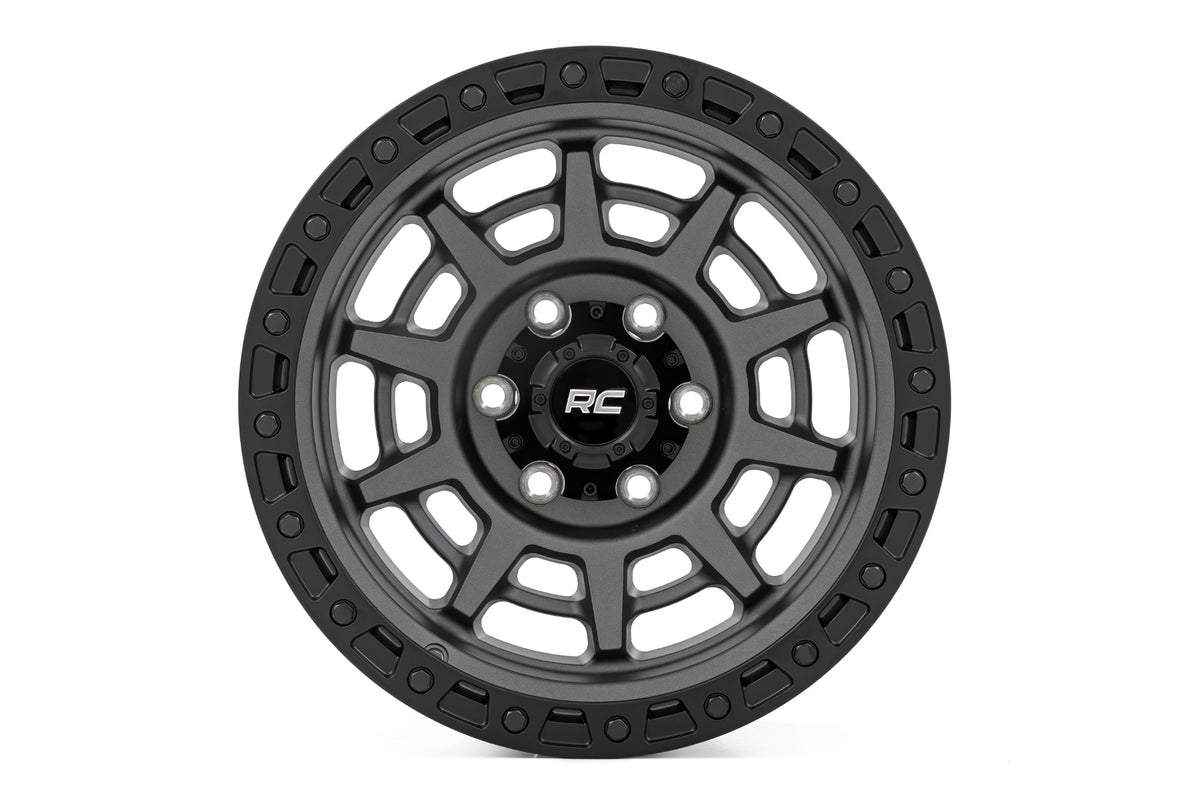 - Gunmetal Gray w/Black Ring. Simulated Beadlock. Single-piece aluminum construction delivers a super strong, super light wheel. Includes a Rough Country black center cap. Backed by a 1-year finish and Limited Lifetime Structural Warranty.