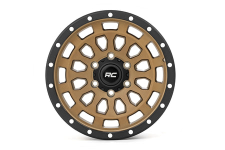 Stand-out Look. Rough Country 87 Series Bronze Wheels are built for maximum durability and strength with high-performance styling that ensures that it's ready to withstand anything on the street. Opting to upgrade your stock wheels will provide you with a rugged appearance and outstanding performance that you expect from Rough Country products. The 87 Series bronze Wheel is a must for anybody who wants to add a bold new look to make your ride stand out from the crowd.\ Superior Design. Our Series 87 bronze Wheels feature a high-quality bronze finish with matte black simulated bead lock and one-piece aluminum construction that delivers a strong, durable wheel. These copper color wheels boast an aggressive design and include a Rough Country black center cap, so you can tackle the road in style. Rough Country's Copper Wheels come with a 1-year finish and Limited Lifetime Structural Warranty.