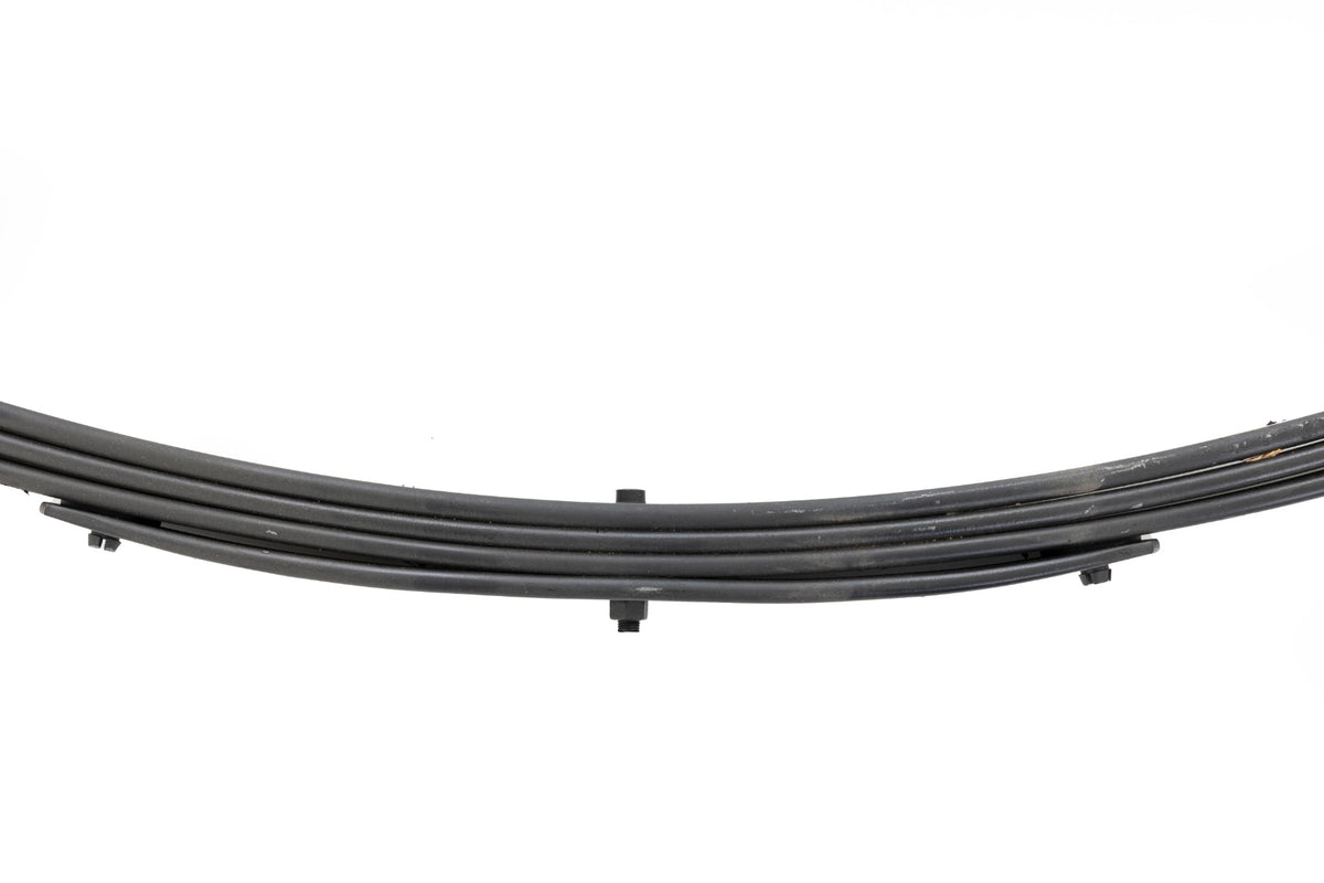 Added Lift Height and Ride Comfort. Take your suspension kit to the next level with Rough Country's Replacement Leaf Springs. Constructed from high-quality materials and designed specifically for the weight of your vehicle. This enhanced replacement spring will provide a factory-like feel while retaining your suspension lift height.?á\ Durable and Off-Road Ready. Rough Country's Replacement Leaf Springs are designed to tackle any terrain that they are faced with. Featuring a multi-leaf design and spring pads this reduces the friction and maximizes comfort. Each leaf pack utilizes tapered leaves for improved flexibility at their ends.?á\ Installation. Rough Country's Replacement Leaf Springs?áoffer a 100% bolt-on installation estimated to take approximately 1-2 hours depending on vehicle condition. Simply remove the pre-existing leaf spring and use the stock hardware to equip your vehicle with this high-quality replacement.?á\ Lifetime Replacement Warranty. Rough Country's Replacement Leaf is backed with a 5-year replacement warranty towards manufacturer defects. As such, the product is protected from structural and workmanship damage after the date of purchase. With our industry-leading warranty give yourself peace of mind when using Rough Country's Suspension products!?á