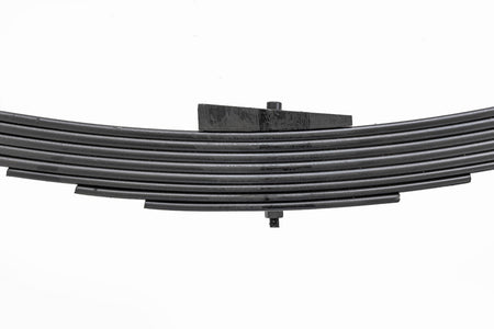 Added Lift Height and Ride Comfort. Take your suspension kit to the next level with Rough Country's Replacement Leaf Springs. Constructed from high-quality materials and designed specifically for the weight of your vehicle. This enhanced replacement spring will provide a factory-like feel while retaining your suspension lift height. Durable and Off-Road Ready. Rough Country's Replacement Leaf Springs are designed to tackle any terrain that they are faced with. Featuring a multi-leaf design and spring pads this reduces the friction and maximizes comfort. Each leaf pack utilizes tapered leaves for improved flexibility at their ends. Installation. Rough Country's Replacement Leaf Springs?áoffer a 100% bolt-on installation estimated to take approximately 1-2 hours depending on vehicle condition. Simply remove the pre-existing leaf spring and use the stock hardware to equip your vehicle with this high-quality replacement. Lifetime Replacement Warranty. Rough Country's Replacement Leaf is backed with a 5-year replacement warranty towards manufacturer defects. As such, the product is protected from structural and workmanship damage after the date of purchase. With our industry-leading warranty give yourself peace of mind when using Rough Country's Suspension products!