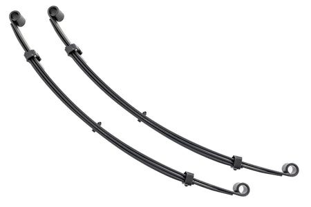 Added Lift Height and Ride Comfort. Take your suspension kit to the next level with Rough Country's Replacement Leaf Springs. Constructed from high-quality materials and designed specifically for the weight of your vehicle. This enhanced replacement spring will provide a factory-like feel while retaining your suspension lift height.?á\ Durable and Off-Road Ready. Rough Country's Replacement Leaf Springs are designed to tackle any terrain that they are faced with. Featuring a multi-leaf design and spring pads this reduces the friction and maximizes comfort. Each leaf pack utilizes tapered leaves for improved flexibility at their ends.?á\ Installation. Rough Country's Replacement Leaf Springs?áoffer a 100% bolt-on installation estimated to take approximately 1-2 hours depending on vehicle condition. Simply remove the pre-existing leaf spring and use the stock hardware to equip your vehicle with this high-quality replacement.?á\ Lifetime Replacement Warranty. Rough Country's Replacement Leaf is backed with a 5-year replacement warranty towards manufacturer defects. As such, the product is protected from structural and workmanship damage after the date of purchase. With our industry-leading warranty give yourself peace of mind when using Rough Country's Suspension products!?á
