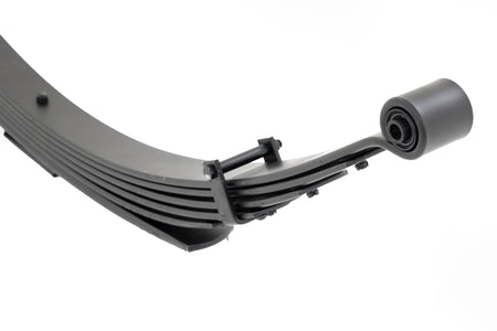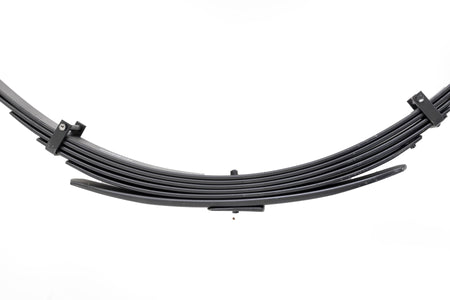 Added Lift Height and Ride Comfort. Take your suspension kit to the next level with Rough Country's Replacement Leaf Springs. Constructed from high-quality materials and designed specifically for the weight of your vehicle. This enhanced replacement spring will provide a factory-like feel while retaining your suspension lift height.?á\ Durable and Off-Road Ready. Rough Country's Replacement Leaf Springs are designed to tackle any terrain that they are faced with. Featuring a multi-leaf design and spring pads this reduces the friction and maximizes comfort. Each leaf pack utilizes tapered leaves for improved flexibility at their ends.?á\ Installation. Rough Country's Replacement Leaf Springs?áoffer a 100% bolt-on installation estimated to take approximately 1-2 hours depending on vehicle condition. Simply remove the pre-existing leaf spring and use the stock hardware to equip your vehicle with this high-quality replacement.?á\ Lifetime Replacement Warranty. Rough Country's Replacement Leaf is backed with a 5-year replacement warranty towards manufacturer defects. As such, the product is protected from structural and workmanship damage after the date of purchase. With our industry-leading warranty give yourself peace of mind when using Rough Country's Suspension products!?á