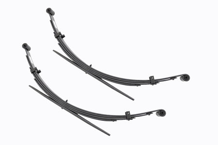 Added Lift Height and Ride Comfort. Take your suspension kit to the next level with Rough Country's Replacement Leaf Springs. Constructed from high-quality materials and designed specifically for the weight of your vehicle. This enhanced replacement spring will provide a factory-like feel while retaining your suspension lift height.?á\ Durable and Off-Road Ready. Rough Country's Replacement Leaf Springs are designed to tackle any terrain that they are faced with. Featuring a multi-leaf design and spring pads this reduces the friction and maximizes comfort. Each leaf pack utilizes tapered leaves for improved flexibility at their ends.?á\ Installation. Rough Country's Replacement Leaf Springs?áoffer a 100% bolt-on installation estimated to take approximately 1-2 hours depending on vehicle condition. Simply remove the pre-existing leaf spring and use the stock hardware to equip your vehicle with this high-quality replacement.?á\ Lifetime Replacement Warranty. Rough Country's Replacement Leaf is backed with a 5-year replacement warranty towards manufacturer defects. As such, the product is protected from structural and workmanship damage after the date of purchase. With our industry-leading warranty give yourself peace of mind when using Rough Country's Suspension products!?á