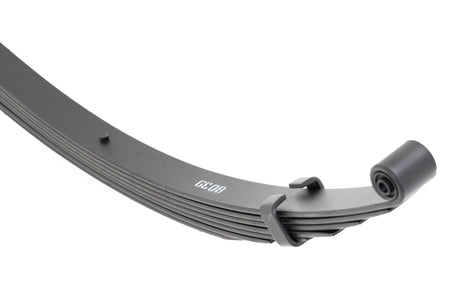 Added Lift Height and Ride Comfort. Take your suspension kit to the next level with Rough Country's Replacement Leaf Springs. Constructed from high-quality materials and designed specifically for the weight of your vehicle. This enhanced replacement spring will provide a factory-like feel while retaining your suspension lift height.?á\ Durable and Off-Road Ready. Rough Country's Replacement Leaf Springs are designed to tackle any terrain that they are faced with. Featuring a multi-leaf design and spring pads this reduces the friction and maximizes comfort. Each leaf pack utilizes tapered leaves for improved flexibility at their ends.?á\ Installation. Rough Country's Replacement Leaf Springs?áoffer a 100% bolt-on installation estimated to take approximately 1-2 hours depending on vehicle condition. Simply remove the pre-existing leaf spring and use the stock hardware to equip your vehicle with this high-quality replacement.?á\ Lifetime Replacement Warranty. Rough Country's Replacement Leaf is backed with a 5-year replacement warranty towards manufacturer defects. As such, the product is protected from structural and workmanship damage after the date of purchase. With our industry-leading warranty give yourself peace of mind when using Rough Country's Suspension products!?á