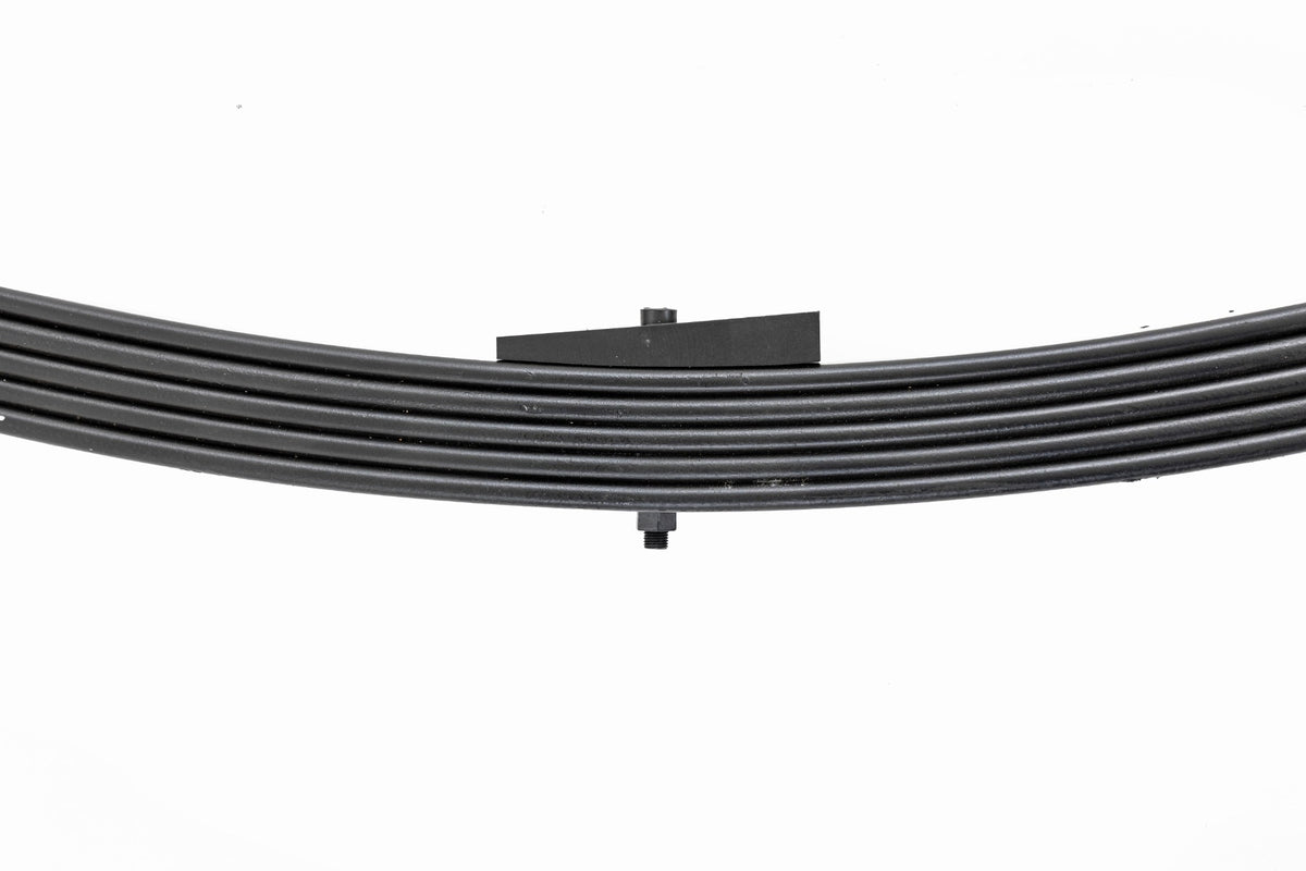 Added Lift Height and Ride Comfort. Take your suspension kit to the next level with Rough Country's Replacement Leaf Springs. Constructed from high-quality materials and designed specifically for the weight of your vehicle. This enhanced replacement spring will provide a factory-like feel while retaining your suspension lift height.?á\ Durable and Off-Road Ready. Rough Country's Replacement Leaf Springs are designed to tackle any terrain that they are faced with. Featuring a multi-leaf design and spring pads this reduces the friction and maximizes comfort. Each leaf pack utilizes tapered leaves for improved flexibility at their ends.?á\ Installation. Rough Country's Replacement Leaf Springs?áoffer a 100% bolt-on installation estimated to take approximately 1-2 hours depending on vehicle condition. Simply remove the pre-existing leaf spring and use the stock hardware to equip your vehicle with this high-quality replacement.?á\ Lifetime Replacement Warranty. Rough Country's Replacement Leaf is backed with a 5-year replacement warranty towards manufacturer defects. As such, the product is protected from structural and workmanship damage after the date of purchase. With our industry-leading warranty give yourself peace of mind when using Rough Country's Suspension products!?á