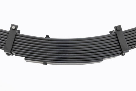 Added Lift Height and Ride Comfort. Take your suspension kit to the next level with Rough Country's Replacement Leaf Springs. Constructed from high-quality materials and designed specifically for the weight of your vehicle. This enhanced replacement spring will provide a factory-like feel while retaining your suspension lift height. Durable and Off-Road Ready. Rough Country's Replacement Leaf Springs are designed to tackle any terrain that they are faced with. Featuring a multi-leaf design and spring pads this reduces the friction and maximizes comfort. Each leaf pack utilizes tapered leaves for improved flexibility at their ends. Installation. Rough Country's Replacement Leaf Springs?áoffer a 100% bolt-on installation estimated to take approximately 1-2 hours depending on vehicle condition. Simply remove the pre-existing leaf spring and use the stock hardware to equip your vehicle with this high-quality replacement. Lifetime Replacement Warranty. Rough Country's Replacement Leaf is backed with a 5-year replacement warranty towards manufacturer defects. As such, the product is protected from structural and workmanship damage after the date of purchase. With our industry-leading warranty give yourself peace of mind when using Rough Country's Suspension products!