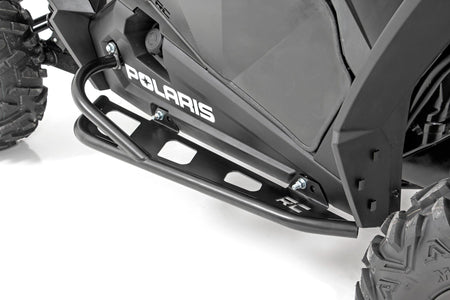 Are you concerned with damaging the plastics on your Polaris 900XP/1000XP when off-roading? UTV's are great off-road machines that deserve to be preserved. Here at Rough Country we keep the adventurist in mind and created Rough Country's Rock Sliders for Polaris 900XP/1000XP 2-seater models! These durable rock sliders are constructed of 3/16" thick steel and boast a massive 1-5/8" diameter tube. Each slider is designed to take the abuse from trees and rocks along the trails! These heavy-duty sliders are powder coated for corrosion and UV resistance to provide a sleek look to your rig. Best of all, Rough Country's Rock Slider kit installs easily without having to drill into the frame and includes all necessary hardware for installation! Simply remove the three bolts on the factory side trim, install our hardware and you're prepared to handle any obstacle thrown your way!