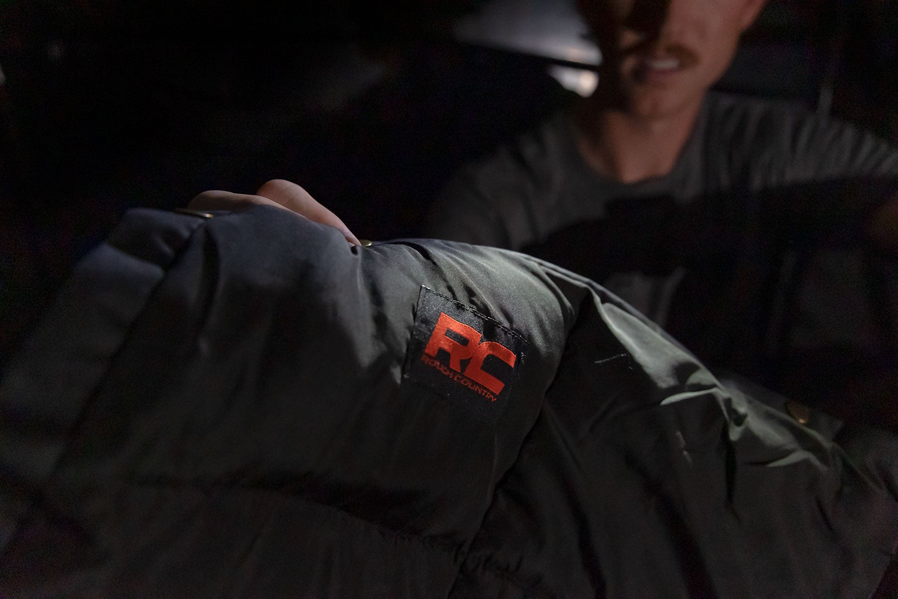 Comfort on the go. Do you love camping and outdoor adventures but hate being cold or wet? Then you need a Rough Country Camping Blanket. Our multi-purpose blanket can be used as protection in the rain, as a sleeping blanket in the cold, or even as a pillow when packed into a stuff sack. Lightweight and compact, it is perfect for camping, lake trips, or anywhere your travels take you. Our multi-purpose blanket is designed to be the perfect outdoor companion, and with a fully expanded size of 80?ǥ x 54?ǥ, you will always be covered.\ Lightweight Comfort. The Rough Country Camping Blanket is a must-have for any camper who wants to stay warm, dry, and, most importantly: comfortable. Made from 40D 300T Ripstop Fabric, it features a water-repellant stuff sack and has polyester-filled (200GSM) material to keep you warm and protected against the weather. Our water-repellent blanket will keep the rain out and keep you warm, while the windproof features make it perfect for those windy days. Best of all, its lightweight design packs down easily into a stuff sack, so it can go everywhere you do!