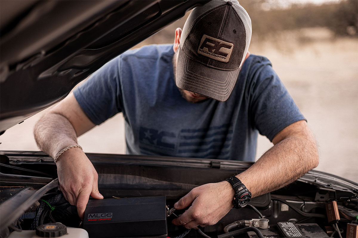 Rep your Rough Country pride with this stylish and comfortable embroidered mesh hat by Rough Country. This low-profile, structured, trucker cap features a contoured bill and front panel with mesh rear for a comfortable fit and excellent airflow. The heavy cotton twill panels and bill are pre-shaped and curved for a durable long life. The stylish contrasting stitch pattern offers a great look, while the snap back strip offers plenty of adjustability for any wearer. Features an embroidered ?ǣRC?ǥ logo patch for killer good looks!