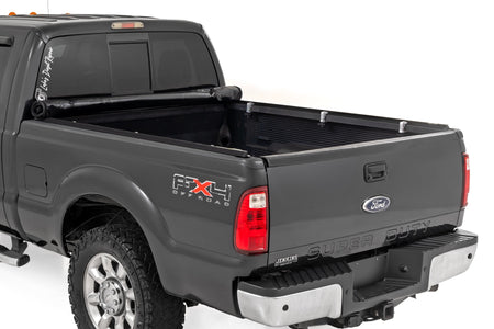Superior Protection. Rough Country's Soft Roll-Up Bed Cover keeps the contents of your bed clean and dry while allowing maximum bed access when you need it. Made with a durable, leather-grain fabric, this easy-to-install bed cover is designed to withstand the elements, featuring tight front and rear seals to keep water, dust, and dirt at bay.\ Low Profile Design. Sitting only 3/4" of an inch above the truck bed this innovative design doesn't distract your truck's overall appearance. Featuring a quick-release system, this cover can easily be removed allowing for 100% bed access.\ Installation. With an estimated time frame of twenty minutes for installation, covering your cargo takes no time! Simply install the supplied bracket system to your factory bed rail, and secure the cover to the railing and you're officially covered!\ Limited Lifetime Warranty. Rough Country's Soft Roll-Up Bed Cover is backed with a limited lifetime replacement warranty towards manufacturer defects. As such, the product is protected from structural and workmanship damage after the date of purchase. With our industry-leading warranty give yourself peace of mind when using Rough Country's Suspension products!