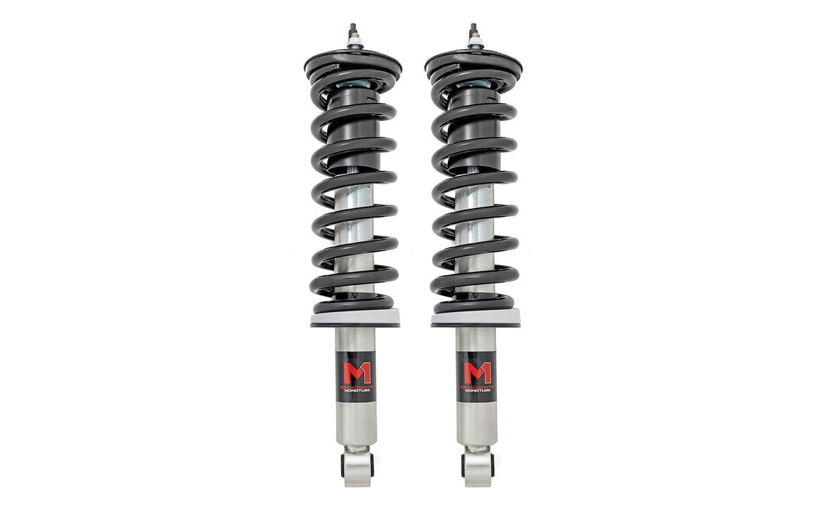 Improved Stance, Balance, and Handling.?ǻIf you want to improve your vehicle's on-road performance and off-road capabilities, Rough Country's M1 Loaded Strut Kits are the way to go. Our M1 Loaded Struts help stabilize your vehicle's movements, enhancing control when you turn, brake, accelerate or ride over uneven road surfaces. As an adjustable ride height strut, these M1?ÇÖs keep your suspension from overextending, providing a more consistent ride. Made for rugged off-road performance, our M1 monotube struts have a 46mm digressive piston for a more stable ride, preserving the smooth ride quality you need.\ Quality Construction.?ǻRough Country's M1 Loaded Struts have been engineered to give you the most reliable performance, increased driving comfort, and all-around performance for your vehicle. Made from 2" seamless extruded tubing and feature durable vulcanized natural rubber bushings. They're also zinc plated for resistance against the elements. Plus, they're adjustable in height. Utilizing multiple grooves in the strut body the spring perch can be raised or lowered. So whether you're looking to add a little extra clearance for off-roading or just want your ride to sit a little higher, our M1 Monotube Loaded Struts are the perfect solution.\ Installation and Warranty. This bolt-on installation requires just basic tools and about 2-3 hours to complete. Our Strut Kit is backed with a limited lifetime replacement warranty towards manufacturer defects. As such, the product is protected from structural and workmanship damage after the date of purchase. With our industry-leading warranty, give yourself peace of mind when using Rough Country's products!