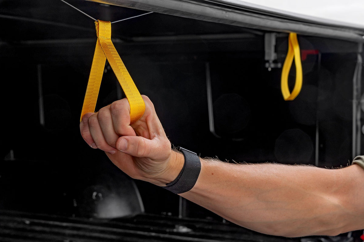 - High-quality marine grade vinyl bed cover in a stylish matte black finish. Roll-up design allows quick access to cargo and full bed access quickly and conveniently. Sleek and stylish top mount cover that sits 1-1/8" high. Corrosion resistant black powder coated aluminum frame. Spring latch closure system locks in place keeping the cover tight and noise free. Single cable pull for easy latch release and access. Heavy Duty hook and loop side closure protects cargo from the elements. No drill easy install and removal - all tools included. 5 Year Warranty.