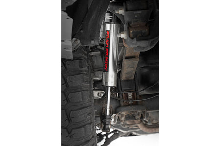 Behold: The pinnacle of off-road performance and smooth ride quality in an affordable package has arrived with Rough Country?ÇÖs 2.5 Vertex 8-Stage Adjustable Reservoir Shocks. These high-performance reservoir shocks offer an elite ride-quality in every situation you face, with an 8-stage adjustable damping system that lets you perfectly dial-in your ride for whatever lies ahead. Whether you want a smooth ride for city streets or the ultimate damping for off-road mayhem, a quick spin of the dial lets you adjust each shock to the exact performance specifications you desire. Rough Country?ÇÖs Nitrogen-charged Vertex Shocks feature a monotube design with an external reservoir for increased oil capacity and damping sensitivity. Each shock features a massive 2.5in diameter piston and a high-flow 22mm chrome hardened piston rod that simply dwarfs the competition. When it comes to investing in a high-end shock, you?ÇÖll be pleased to find that Rough Country?ÇÖs 2.5in piston design is beefier and offers an impressive 56% greater fluid capacity than the average reservoir shock. A 3-stage, fortified seal system ensures your Vertex shocks keep kicking while the beautifully designed honed steel body offers a long lifespan of reliable performance and killer good looks. This shock is designed to be a true eye-catcher, with a beautiful silver finish, laser-etched RC logo, matching "Vertex" decals, and CNC-machined Billet Aluminum accents. Rear shocks feature a durable bracket system with laser-etched logo and a premium braided steel reservoir line. Includes an Industry-leading 3-year Warranty!