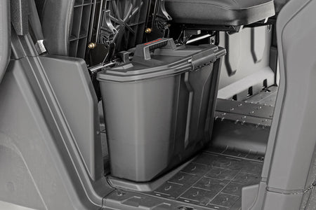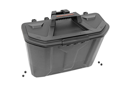 Added Storage. Carrying your essentials in your UTV should never be an issue when taking to the trails. Here at Rough Country, we have created an innovative product to ensure that you are prepared for the road less traveled. Introducing Rough Country's Under Seat Storage Box for 2016+ Can-Am Defender models.?á\ Innovative Design. Rough Country's Storage Boxes boast a large storage area offering approximately 3.7 gallons worth of gear placed under the center seat. Being conveniently placed under the passenger or rear seats, Rough Country's Storage Box ensures that your cargo stays dry and well protected. This convenient storage option allows you to bring your necessities and prevents them from sliding around in the cab!?á Don't take to the trails ill-prepared. Rough Country's storage box is the must-have solution for carrying your cargo!\ Installation.?áWith a simple drop-in design, installation couldn't be easier. With an estimated timeframe of 10-15 minutes, this full storage box can be installed at home efficiently and quickly!\ Limited Lifetime Replacement Warranty. Rough Country's Under Seat Storage Box is backed with a limited lifetime replacement warranty towards manufacturer defects. As such, the product is protected from structural and workmanship damage after the date of purchase. With our industry-leading warranty give yourself peace of mind when using Rough Country's Suspension products!?á